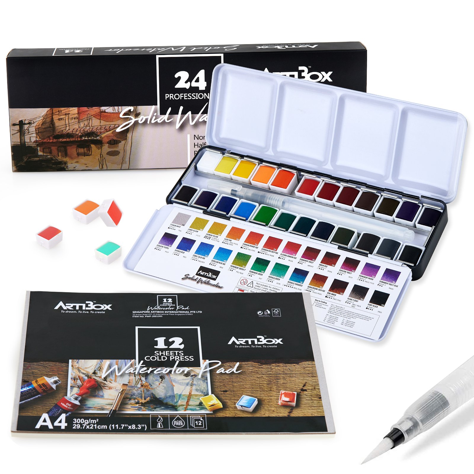 24 x Removable solid watercolor blocks