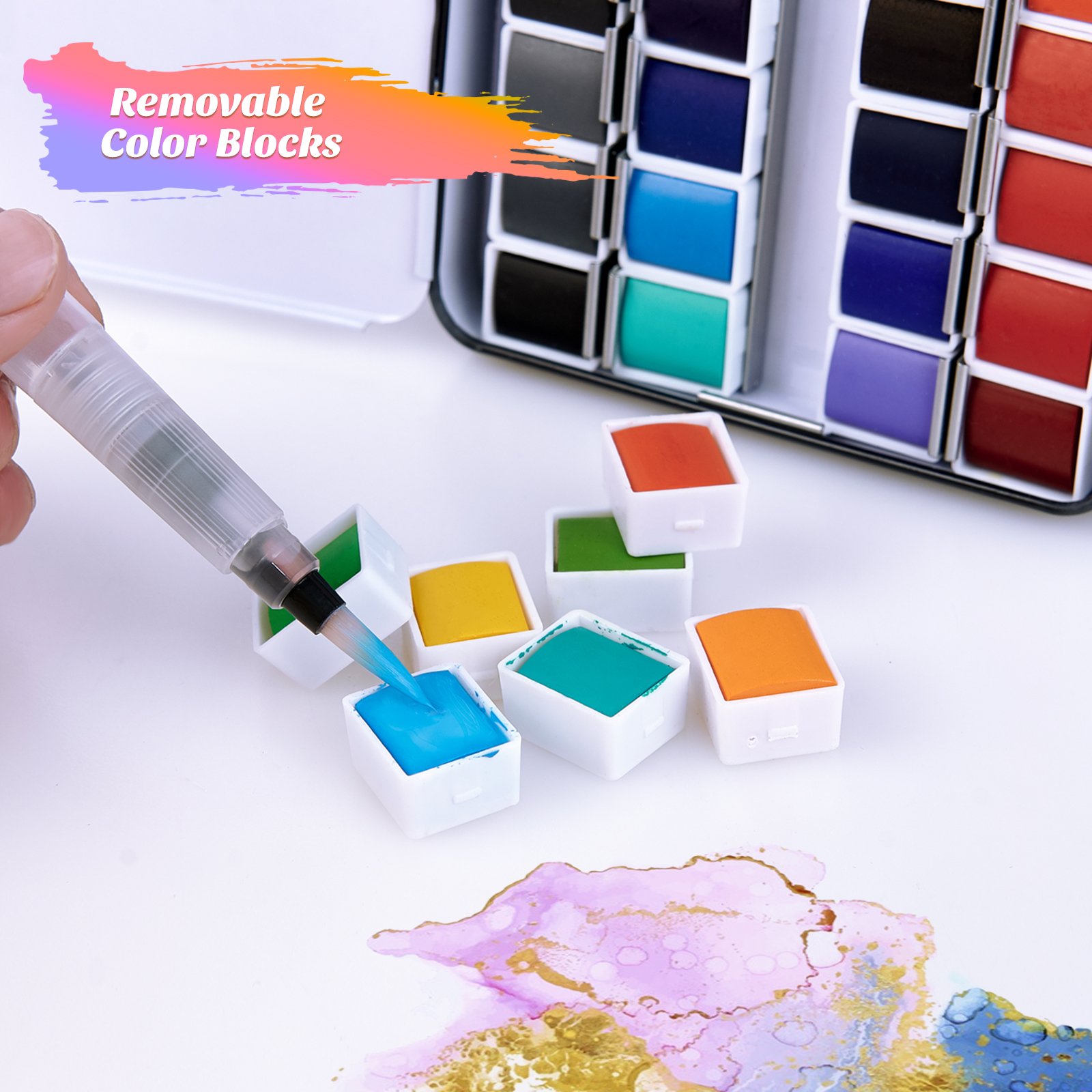 [High Quality] The watercolor paper included with the watercolor set is of professional-grade. This allows ease of creating simple and uniform watercolor paintings. - [REMOVABLE COLOR BLOCK]: Each small color block in the watercolor set can be removed separately, which can effectively avoid dyeing between different colors. After the color block is used up, refills are available, making it a sustainable investment for long-term use.