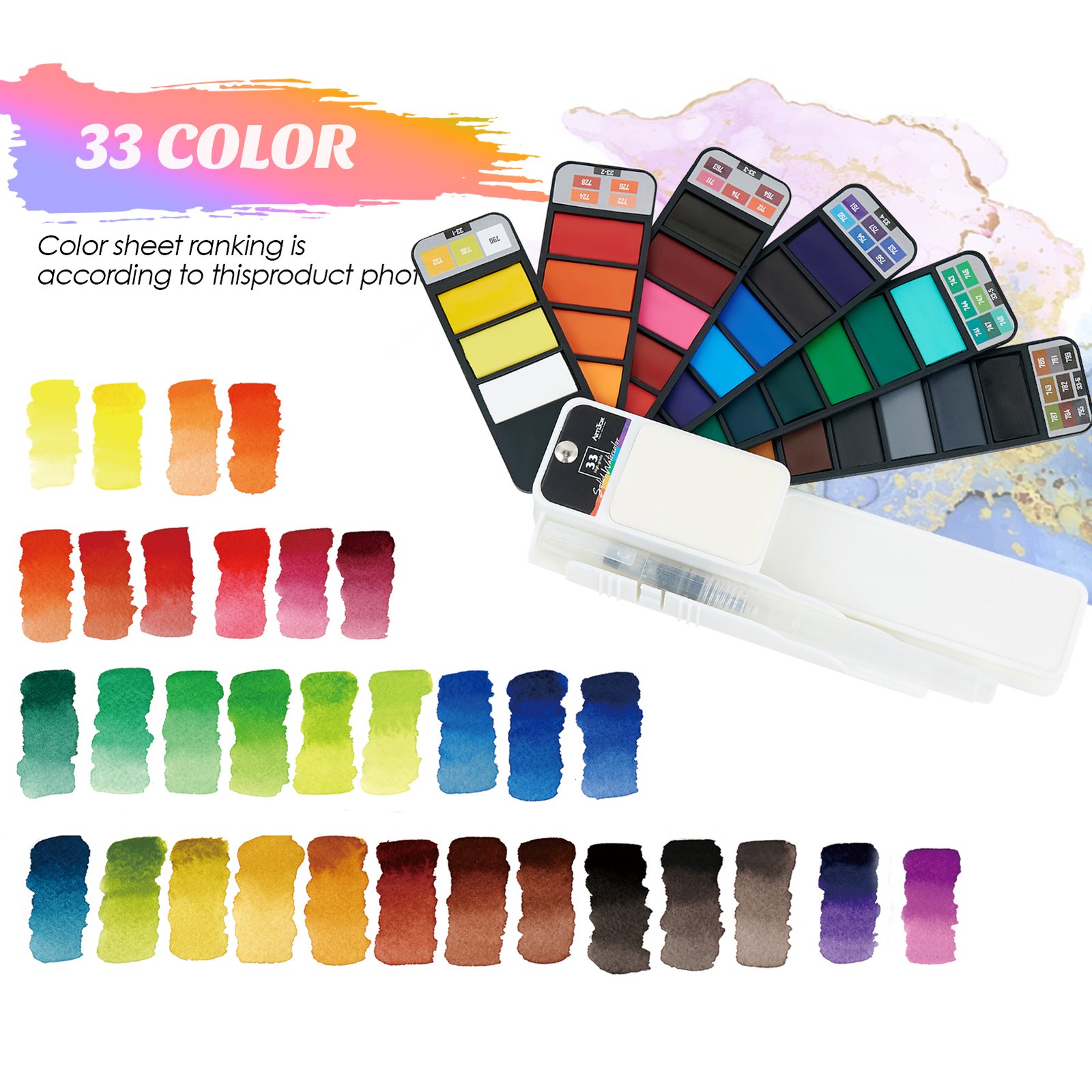 WATERCOLOR TRAVEL SET – 33 Assorted Vibrant Colors